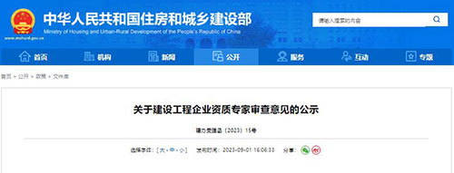 按照《行政许可法》及有关建设工程企业资质管理规定,我部对近期申请建设工程企业资质的申报材料组织了专家审查,现将专家审查意见在住房和城乡建设部门户网站(https://www.mohurd.gov.cn)予以公示,以广泛接受社会监督。企业申报材料中的人员、代表工程业绩等详细情况,可通过点击“住房和城乡建设部门户网站→建设工程企业资质行政审批专栏→资质申报基本信息公示”进行查询。