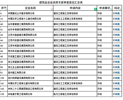 12月1日,住建部公布了新一批建设工程企业资质专家审查意见,其中,这16家申请特级资质,全部不同意!