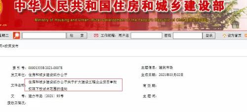 住建部发文:扩大这9省开展建设工程企业资质审批权限下放试点